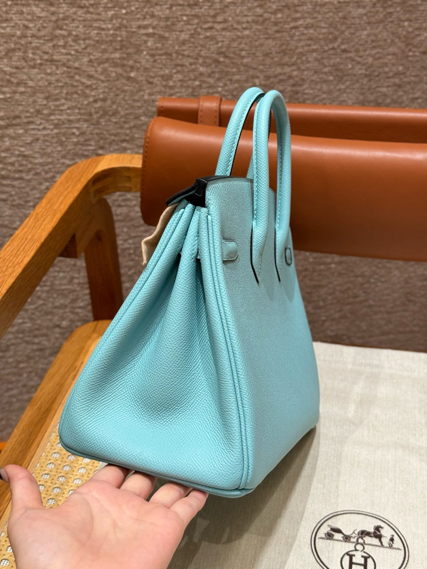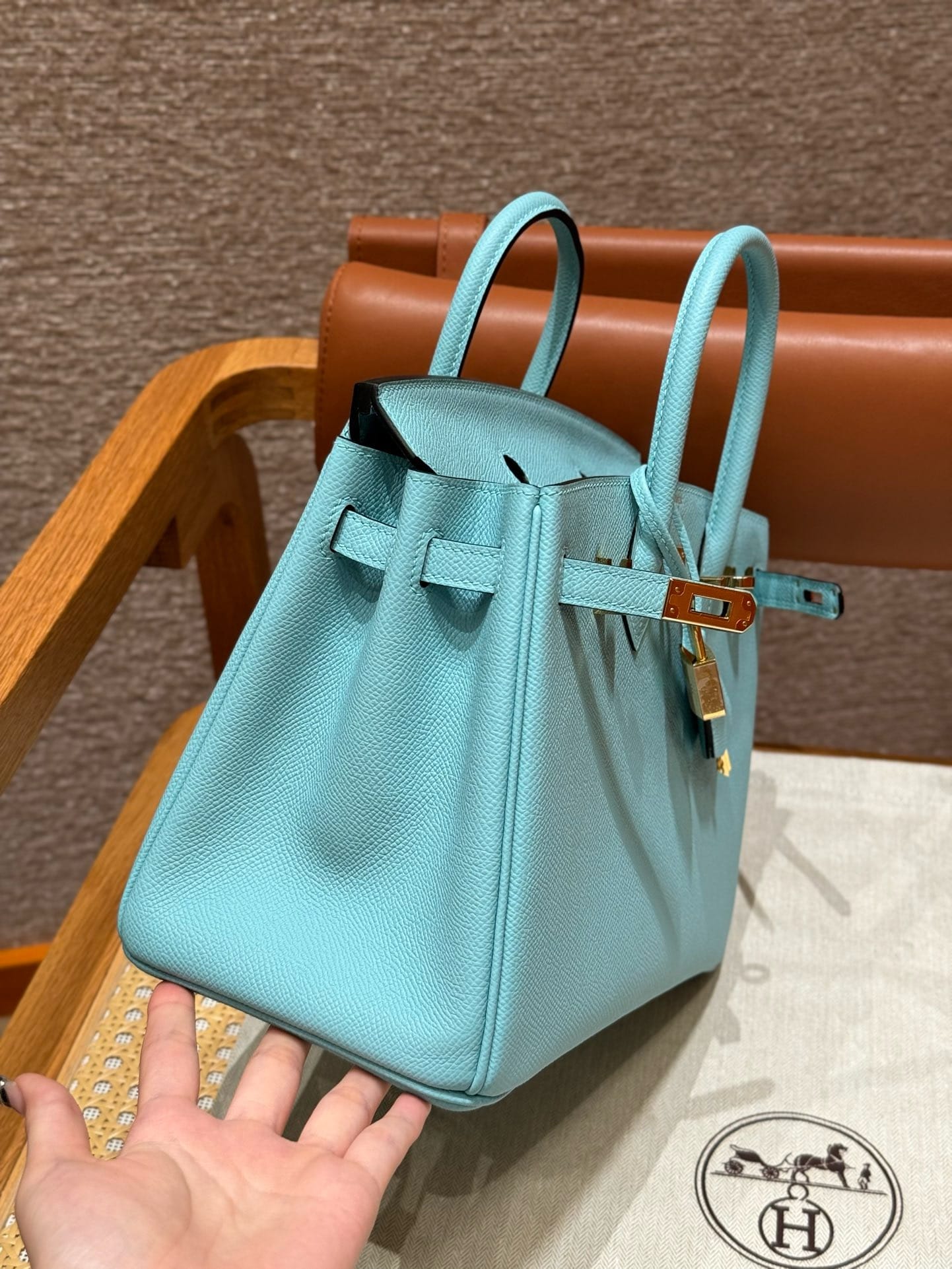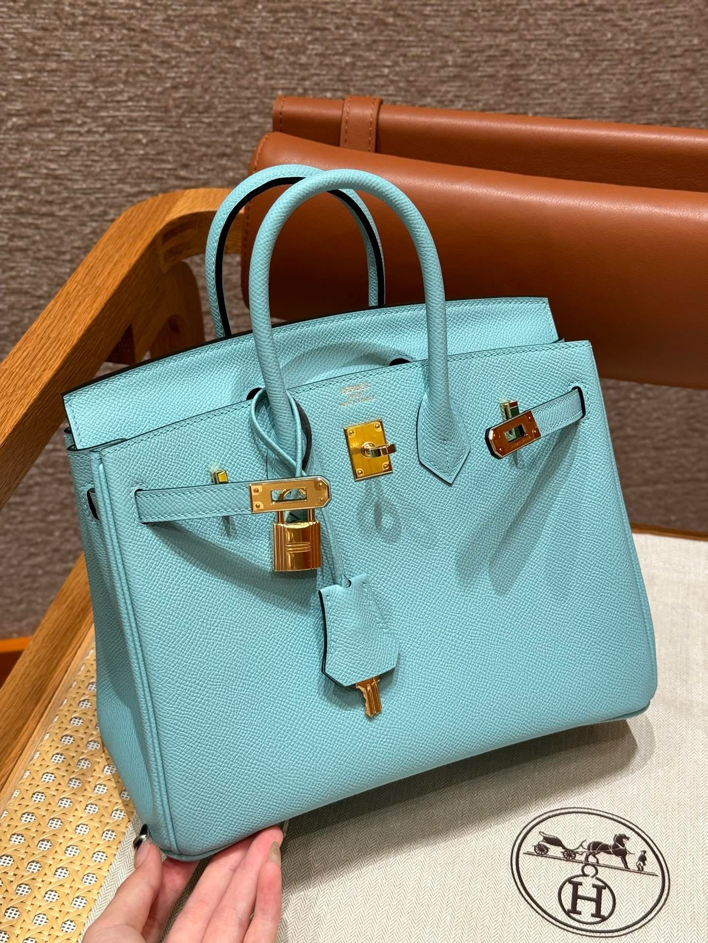 Birkin Hermes Epsom 3P/Blue atoll gold