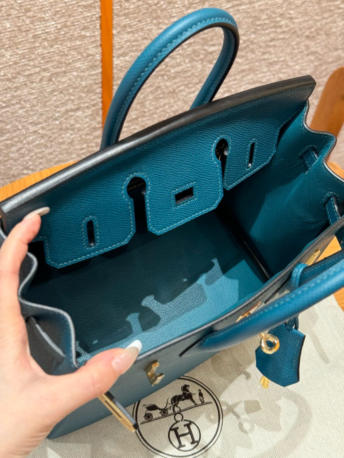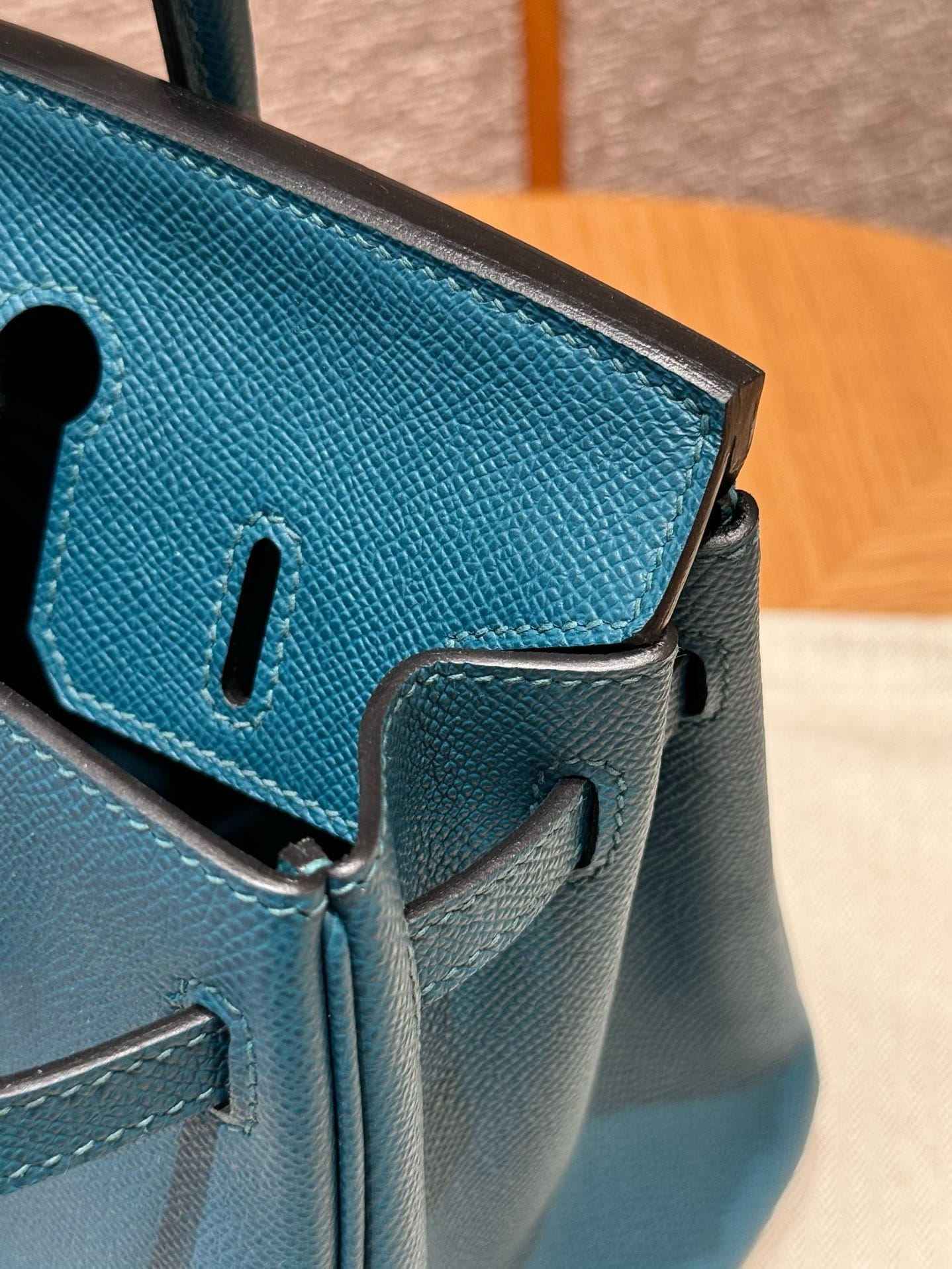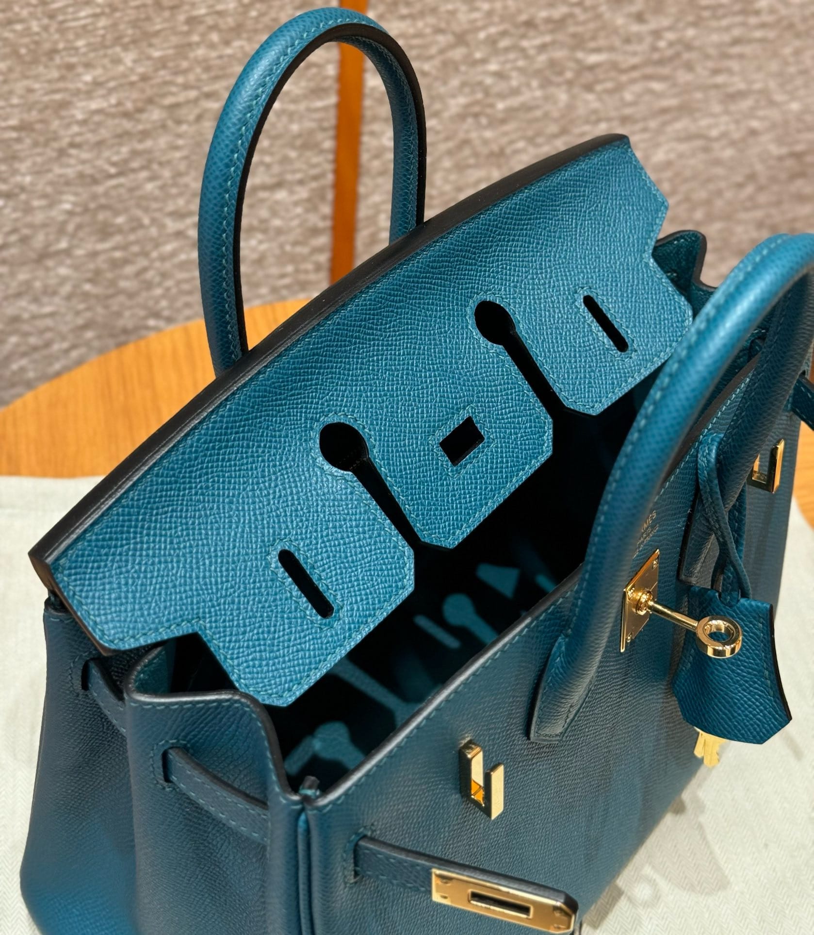 Birkin Hermes Epsom W0/Vert Bosphore gold