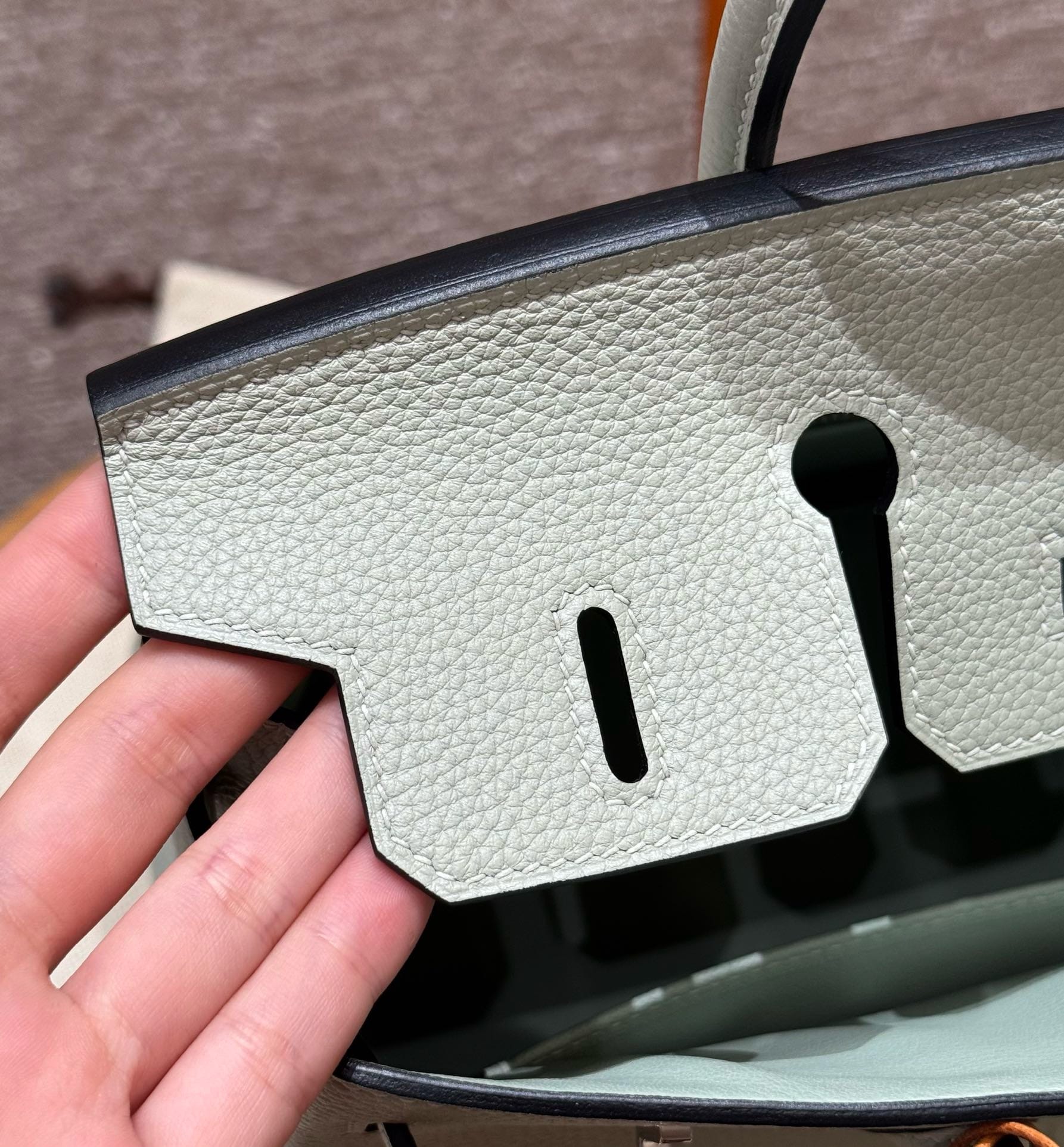 Вы можете выбрать любой цвет фурнитуры и любой цвет кожи для каждой детали сумки