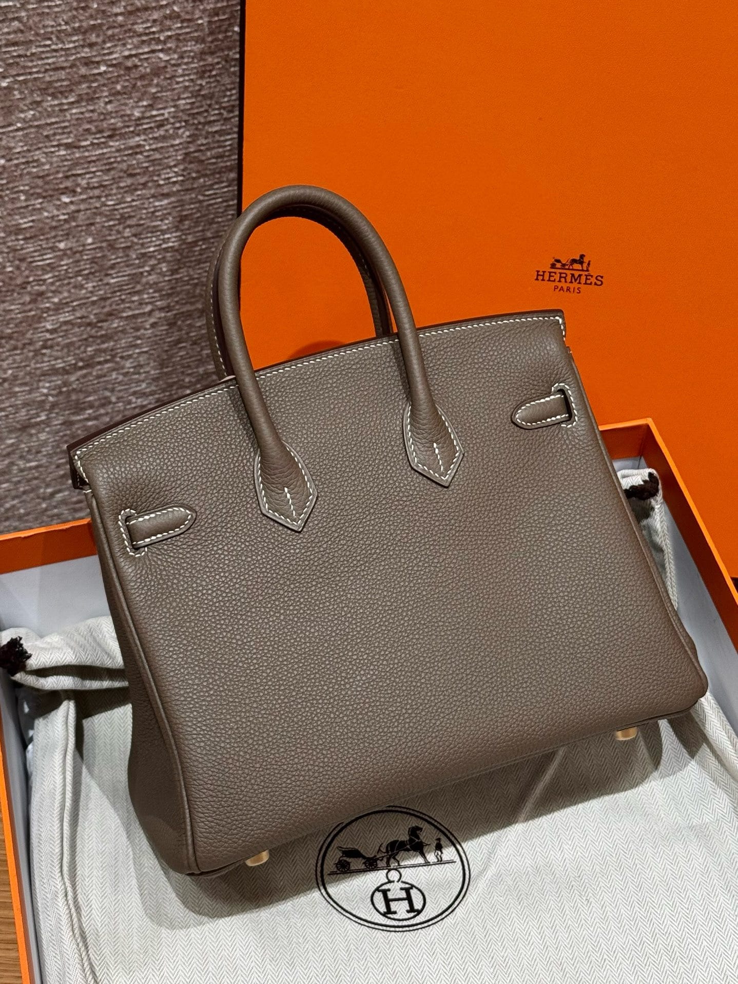Birkin Hermes Togo 18/Etoupe gold