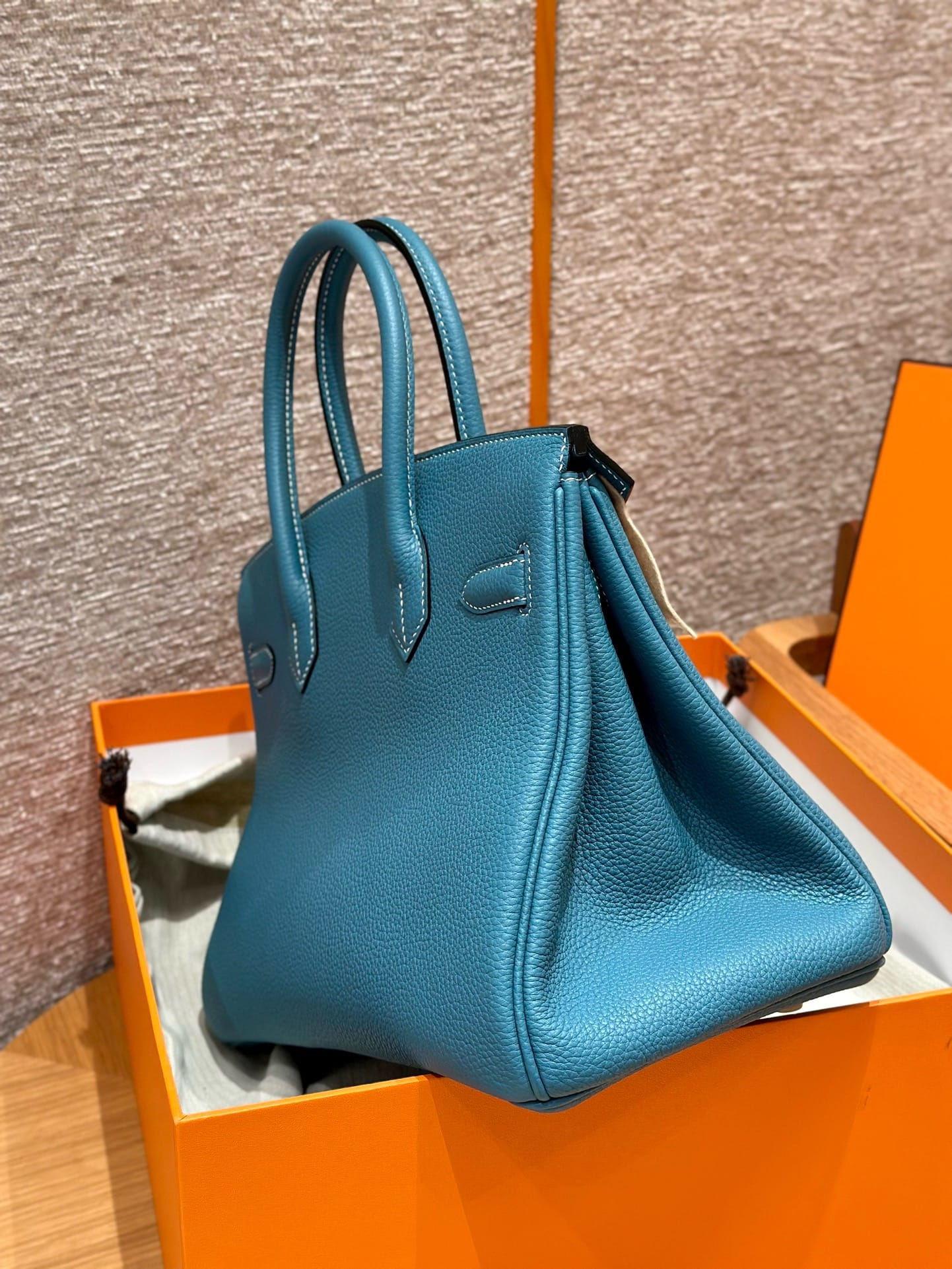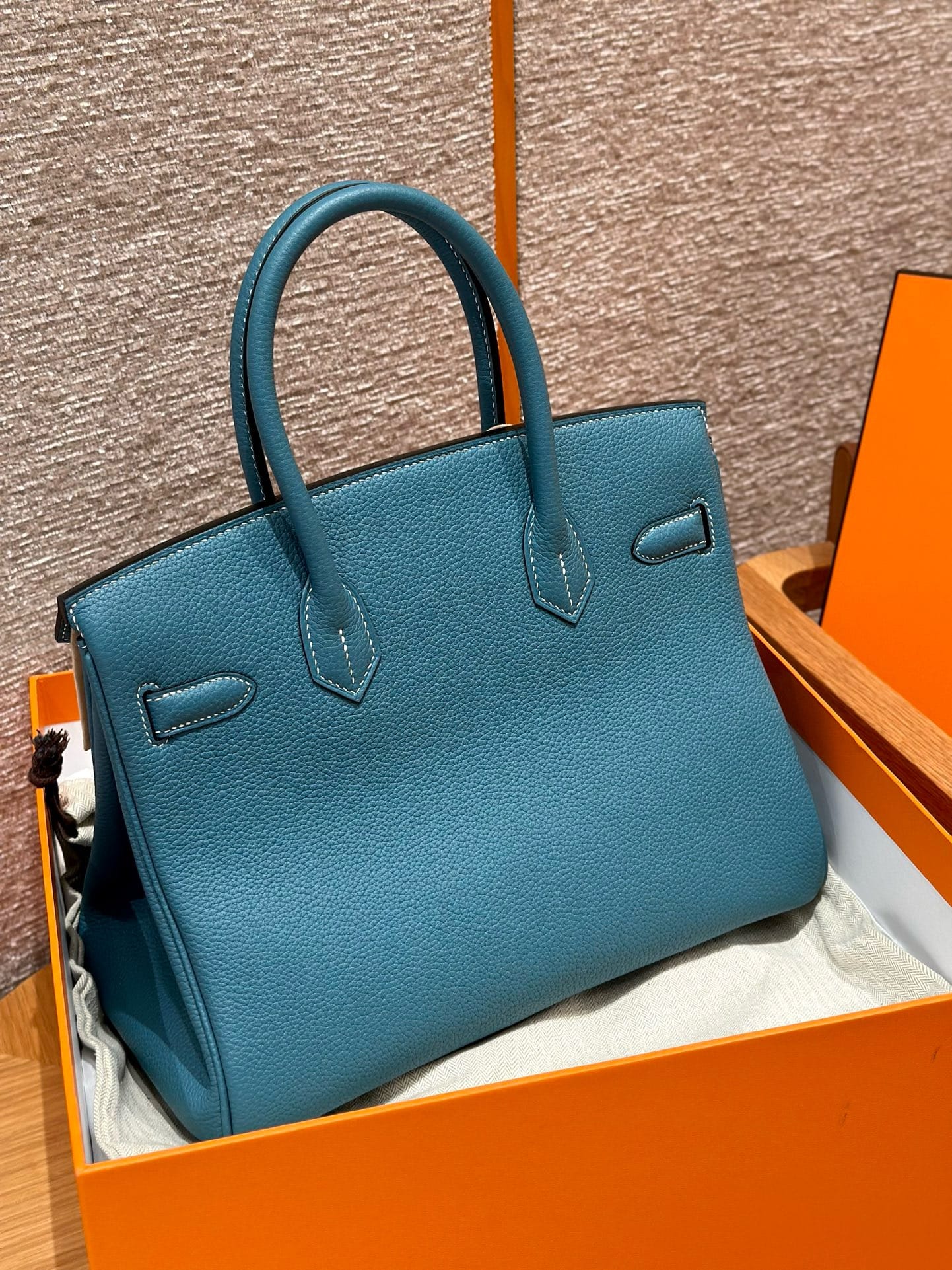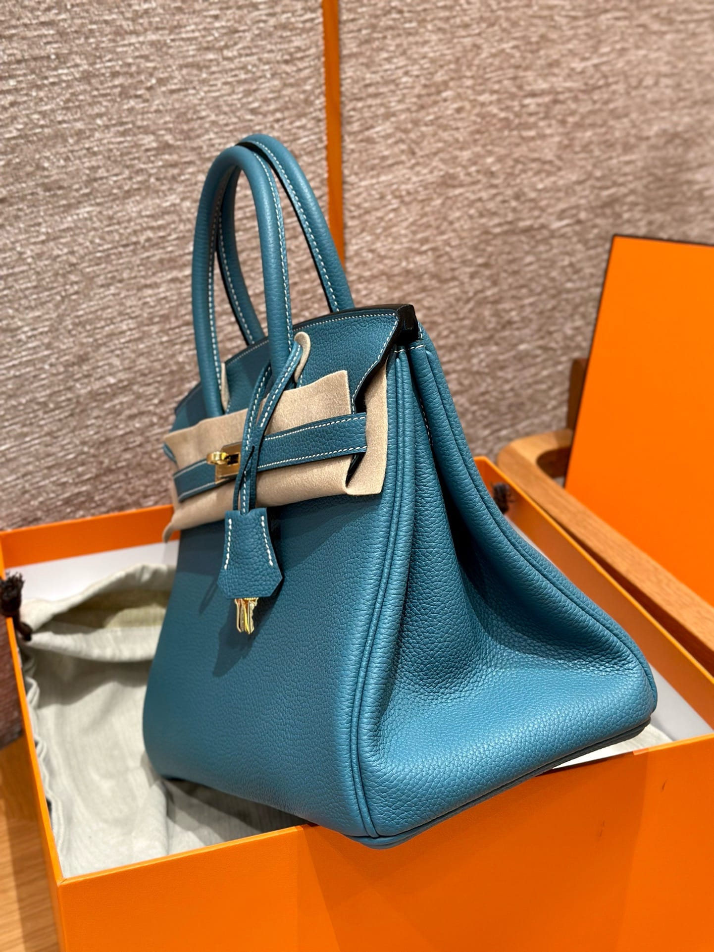 Birkin Hermes Togo 75/Blue Jean gold