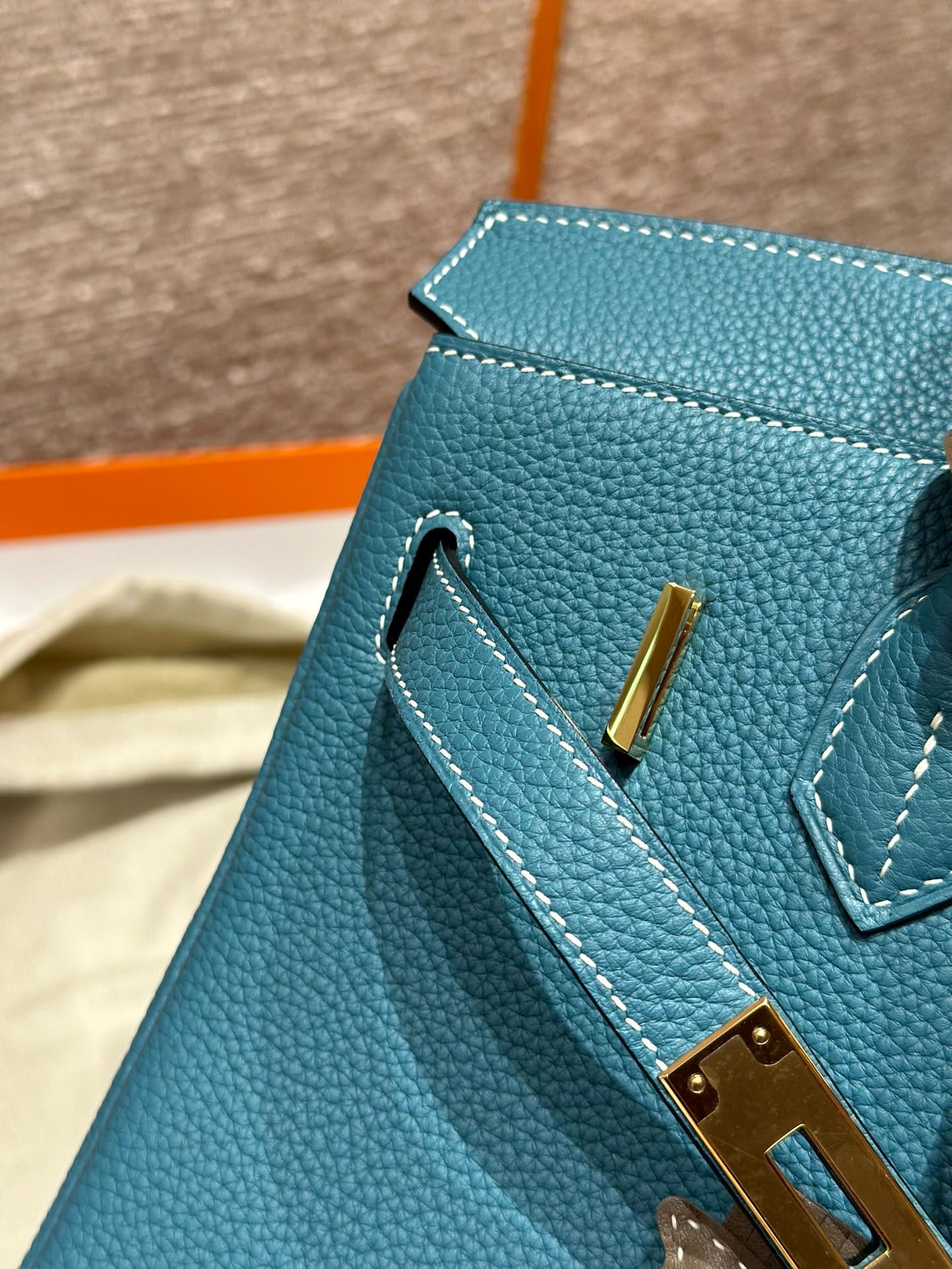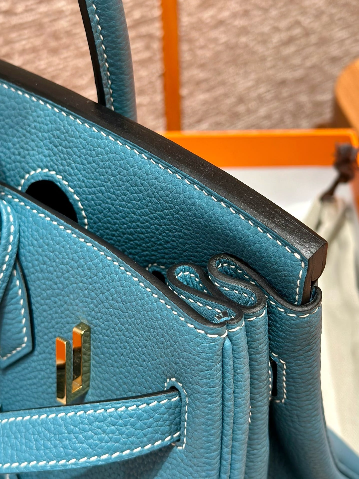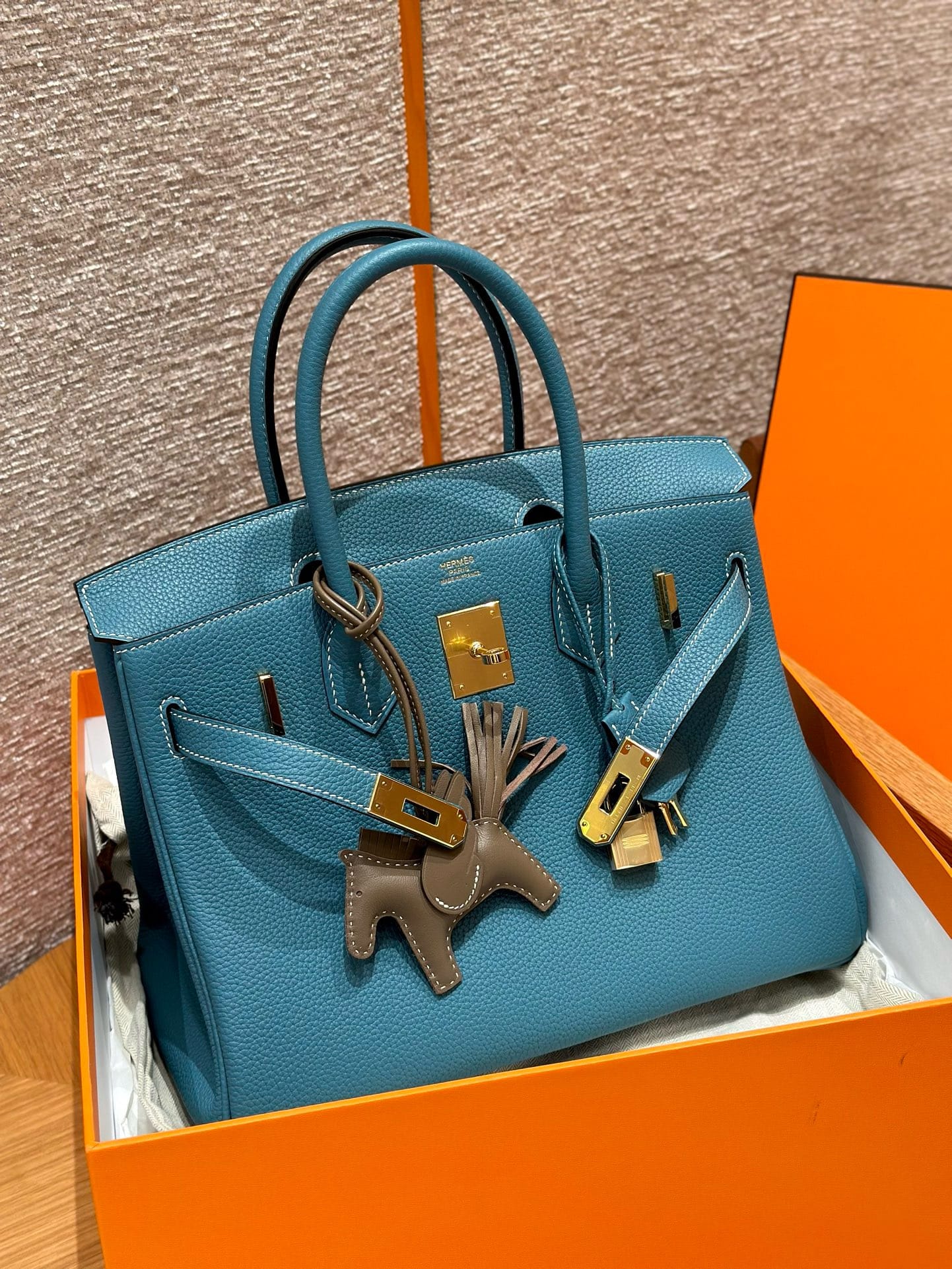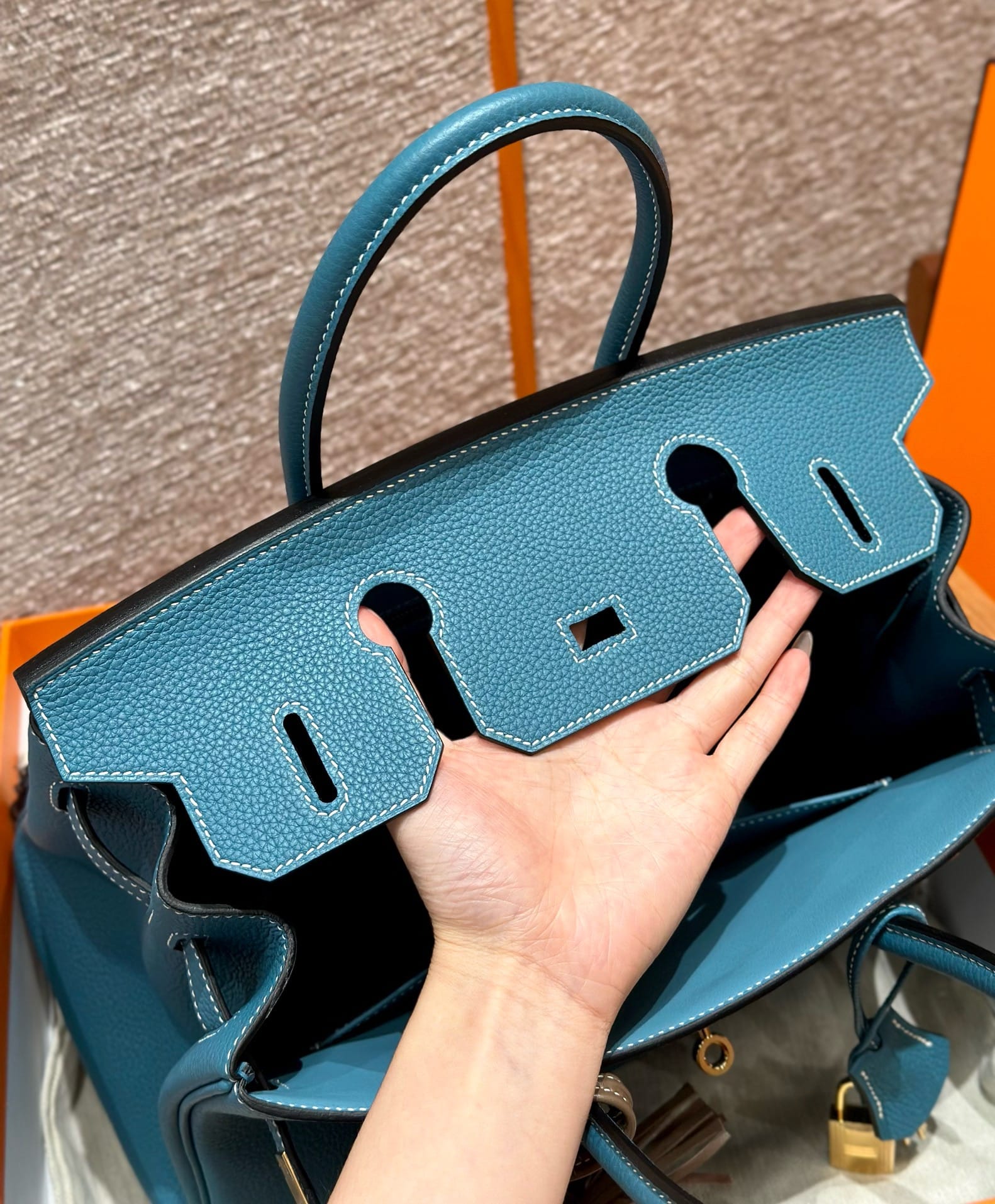 Birkin Hermes Togo 75/Blue Jean gold