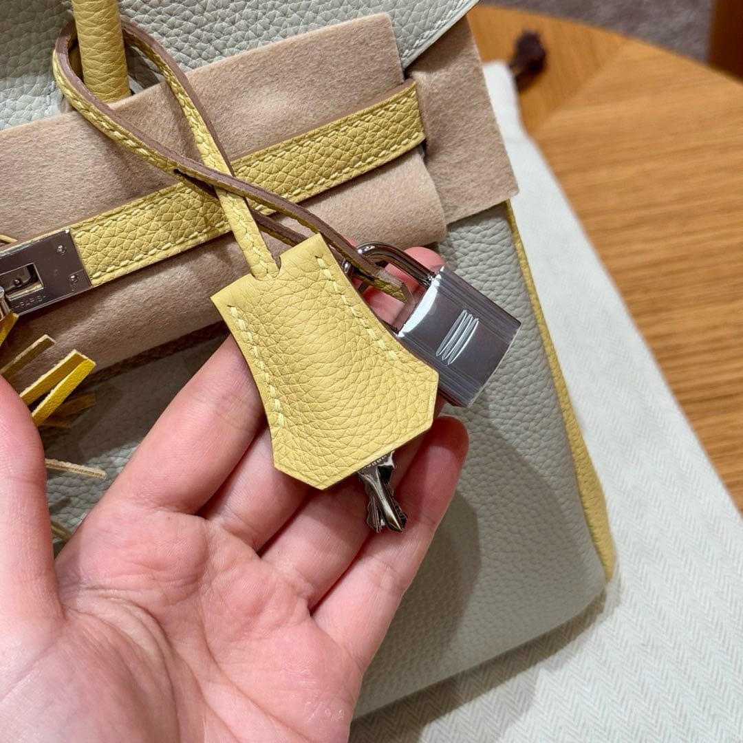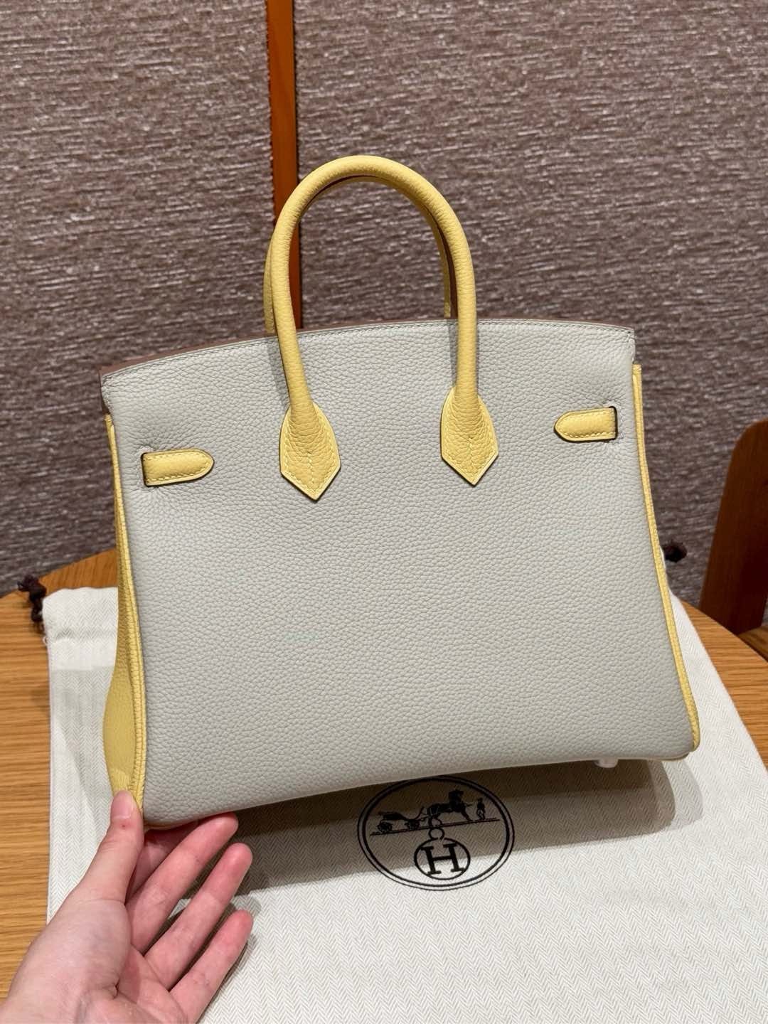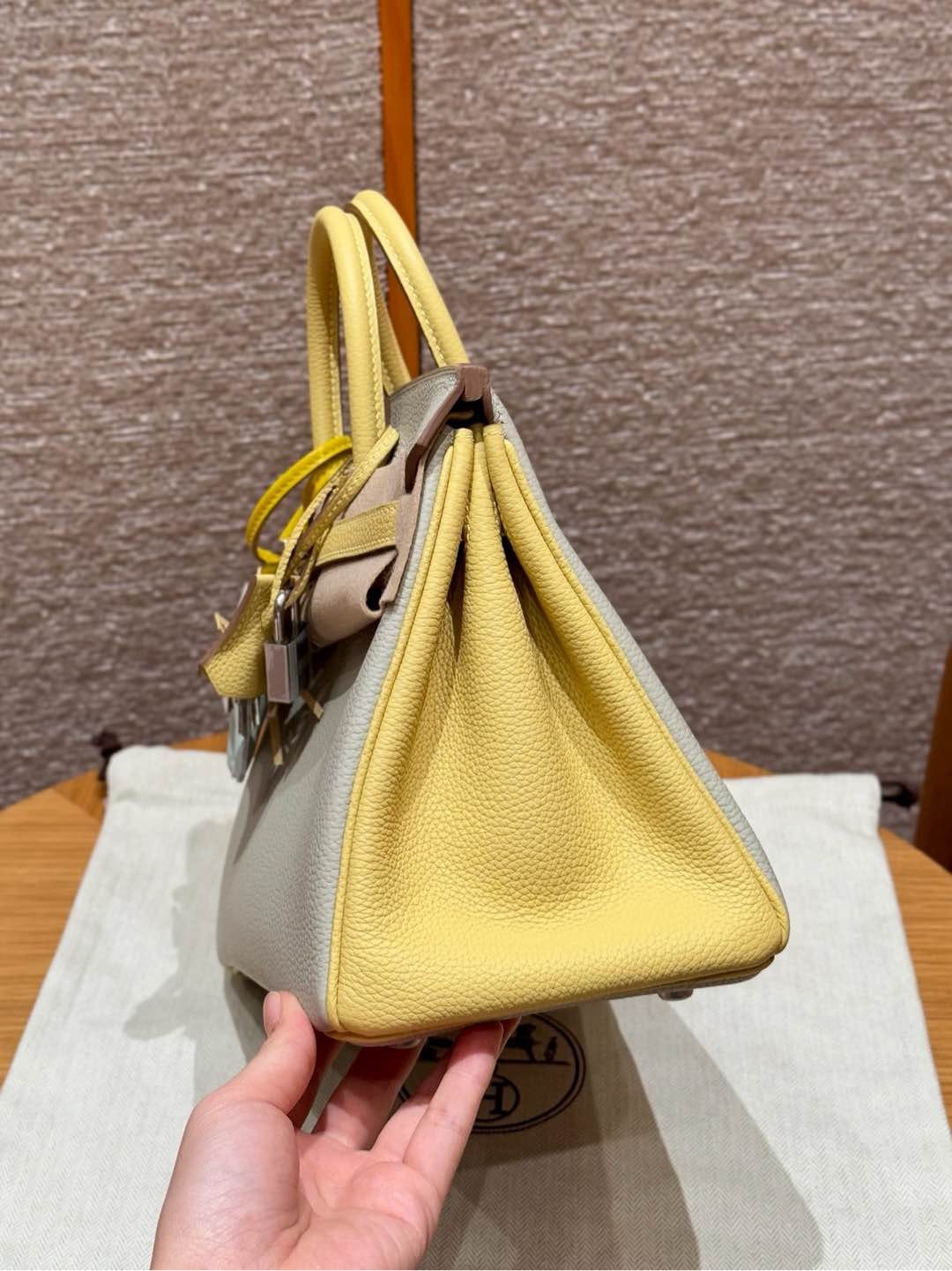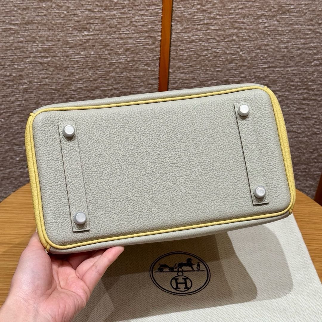 Birkin Hermes Togo 80/Gris Perle/1Z/Jaune Poussin silver