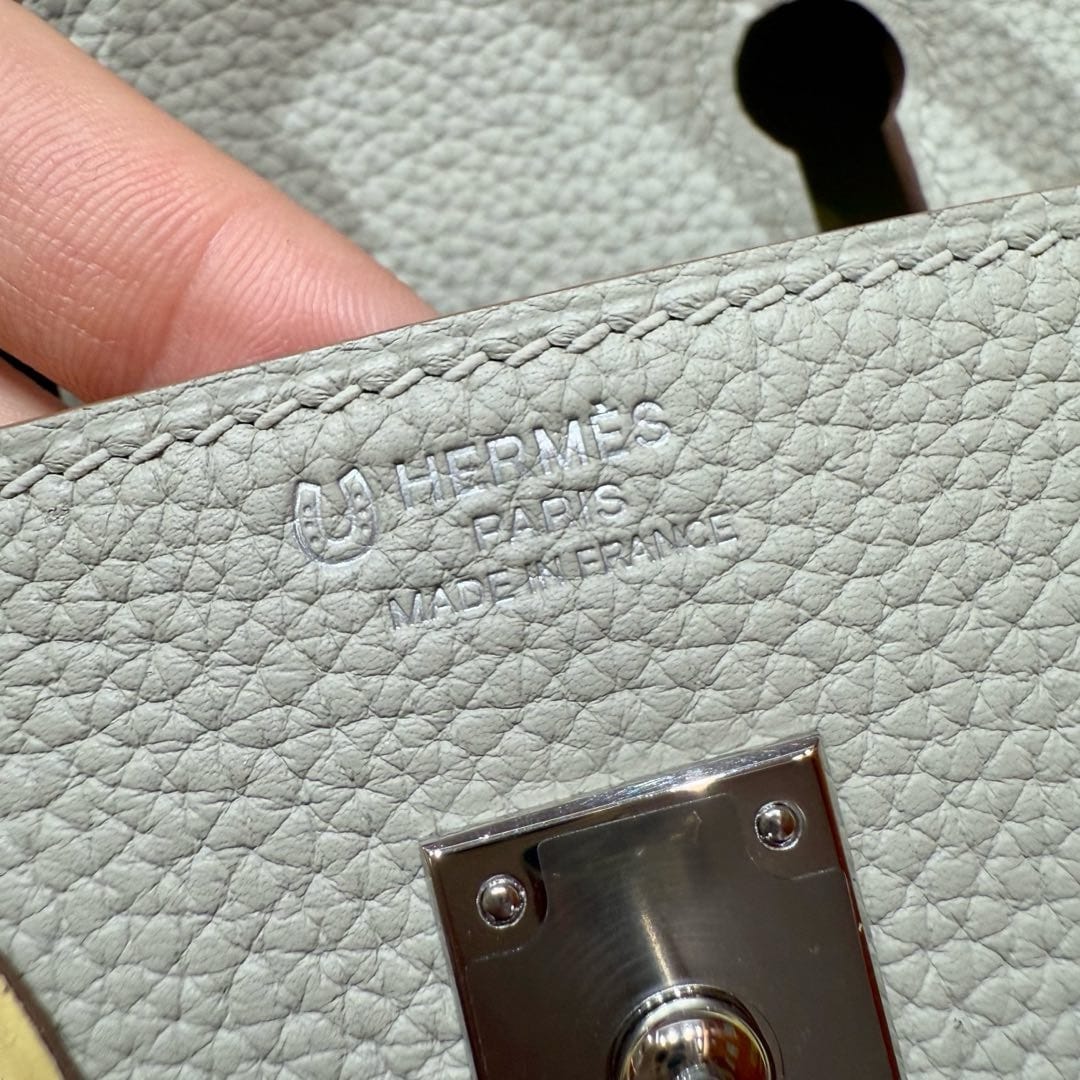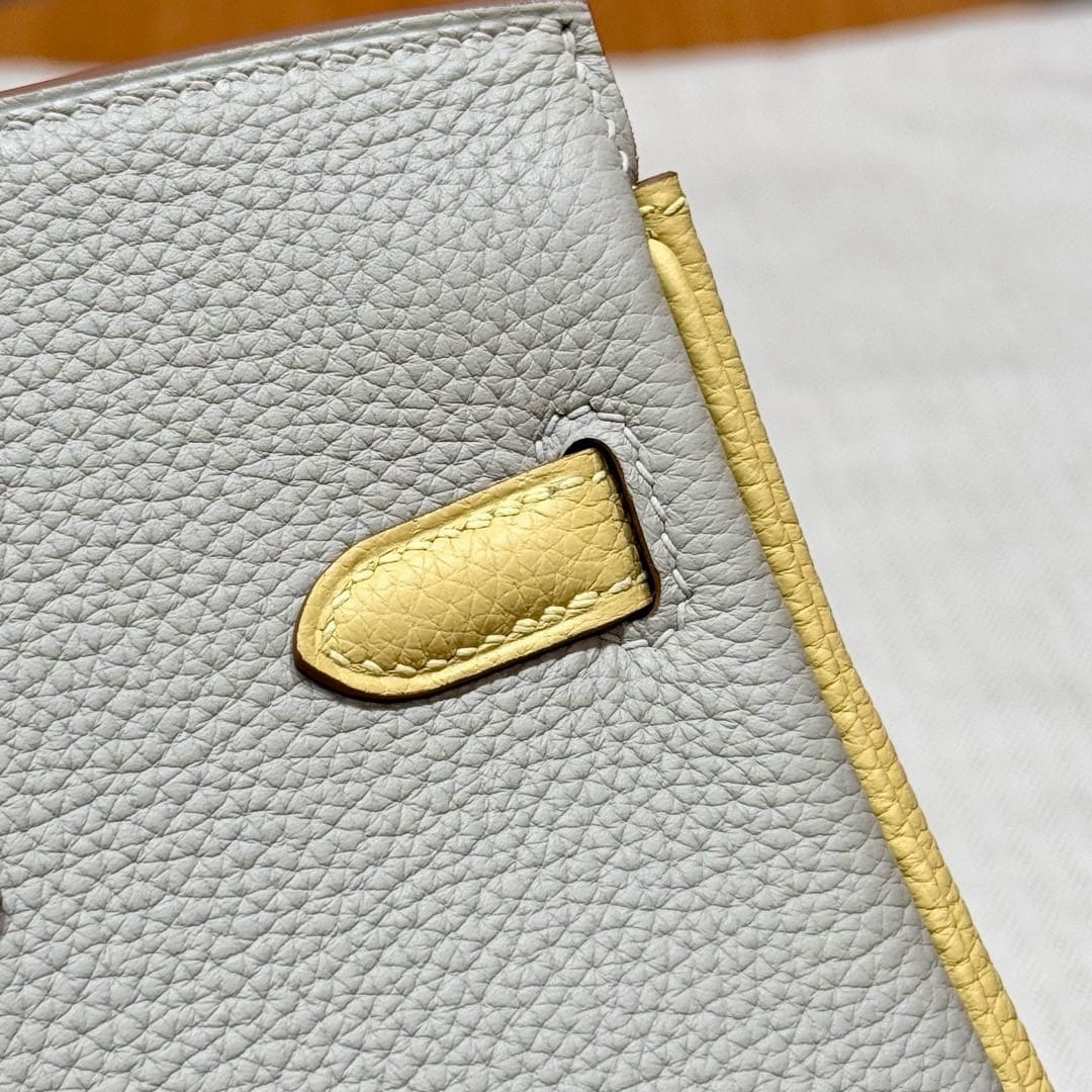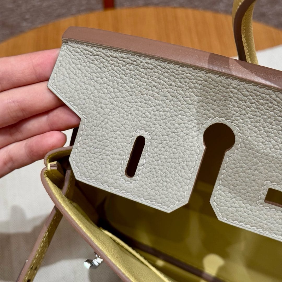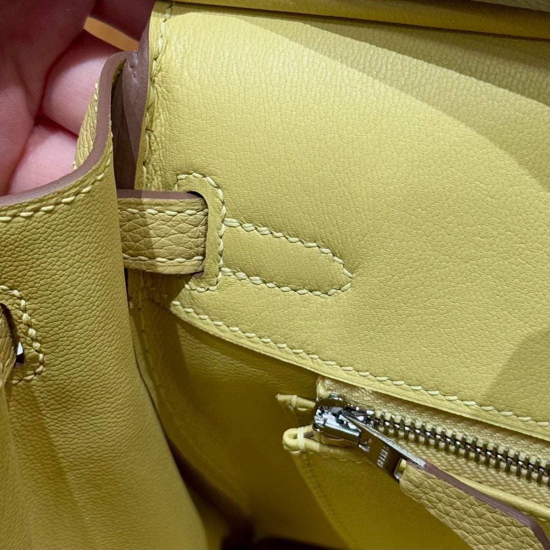 Birkin Hermes Togo 80/Gris Perle/1Z/Jaune Poussin silver
