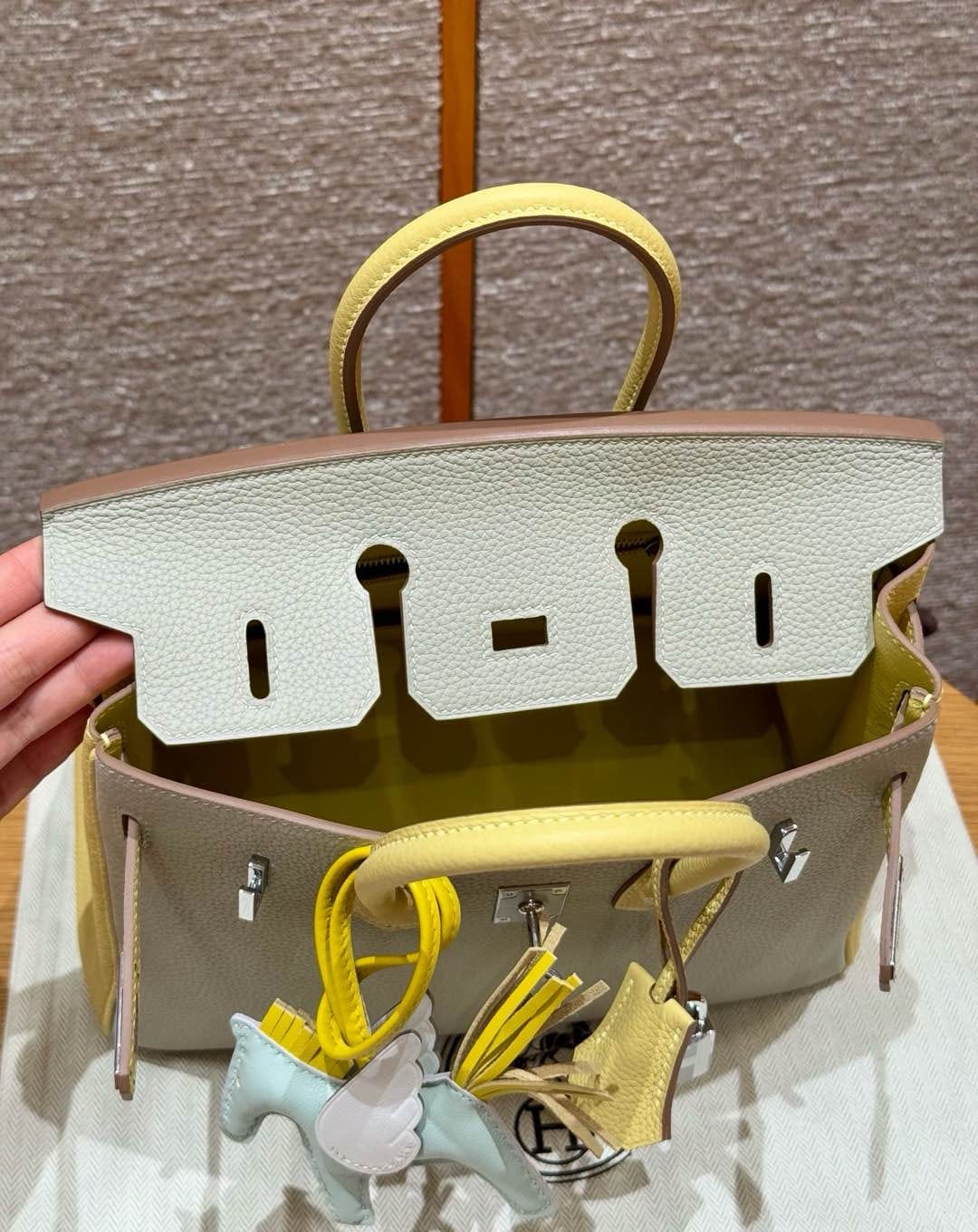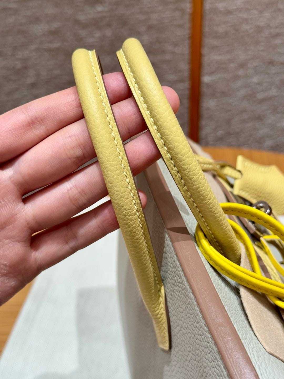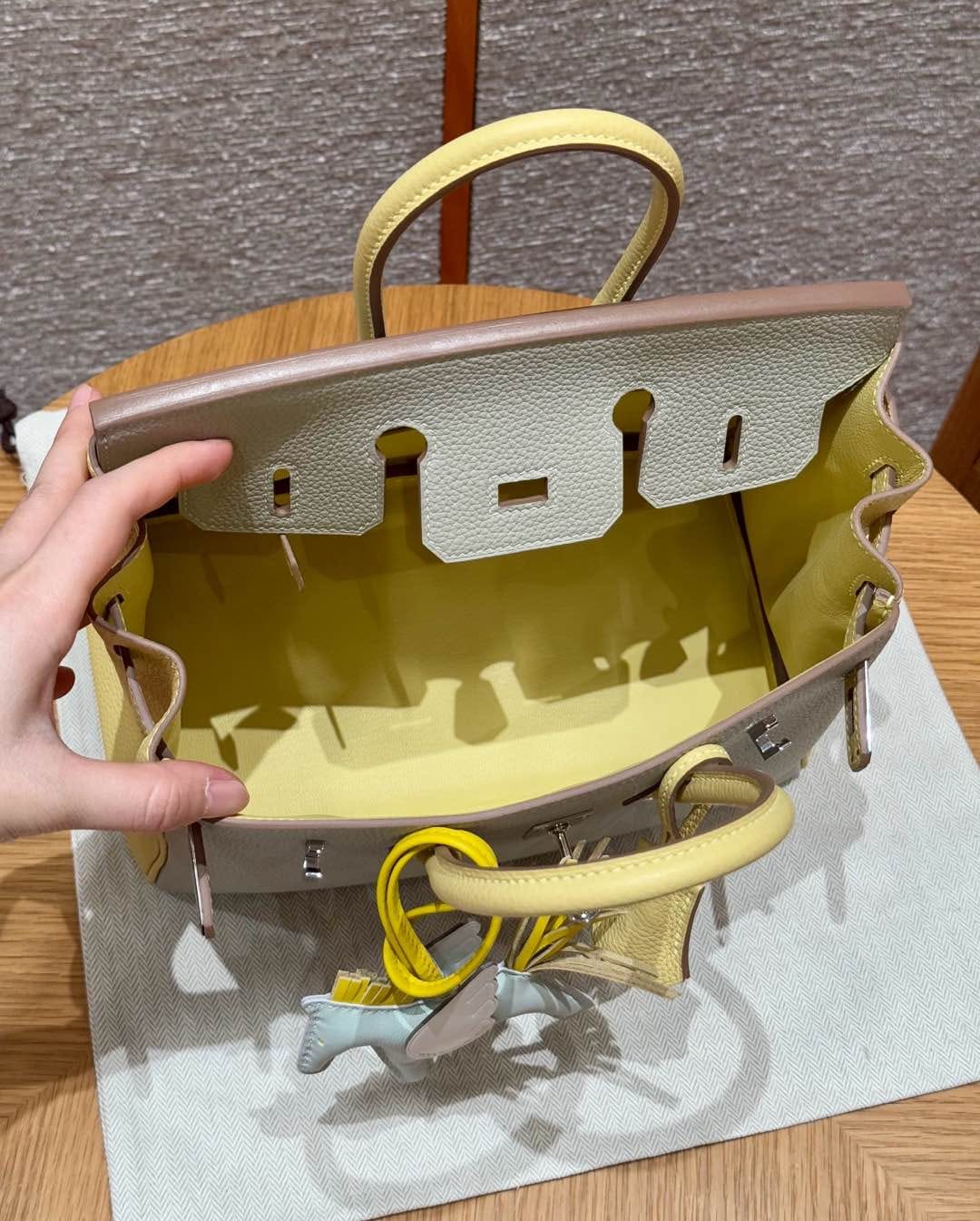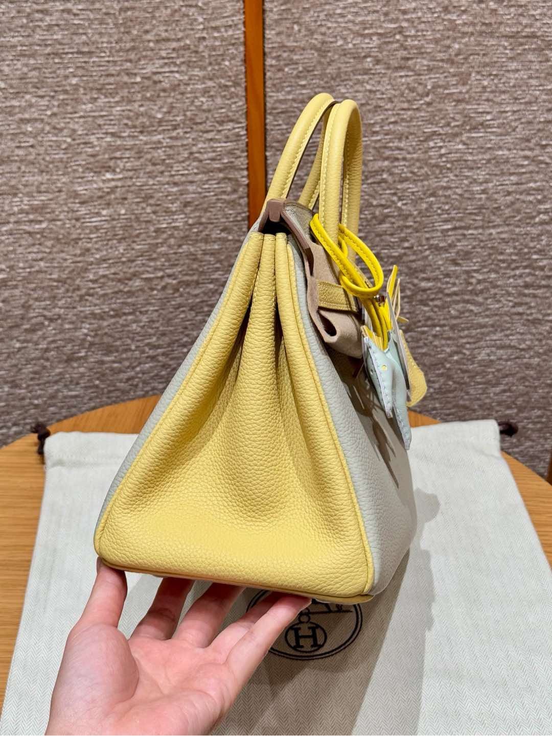 Birkin Hermes Togo 80/Gris Perle/1Z/Jaune Poussin silver