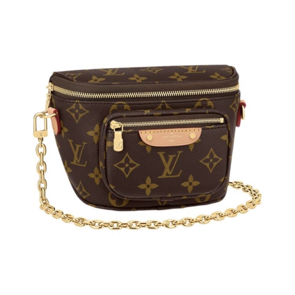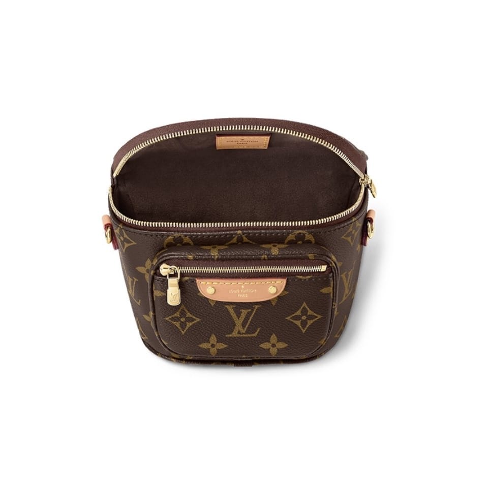 Сумка Bumbag Mini из канвы Monogram представляет собой женственную версию модного поясного аксессуара. Съёмные детали — регулируемый ремень из кожи VVN и цепочка золотистого цвета — позволяют варьировать образ. Вместительное отделение и карман на молнии, украшенный лаконичной эмблемой с тиснёной подписью, подчёркивают универсальность модели.