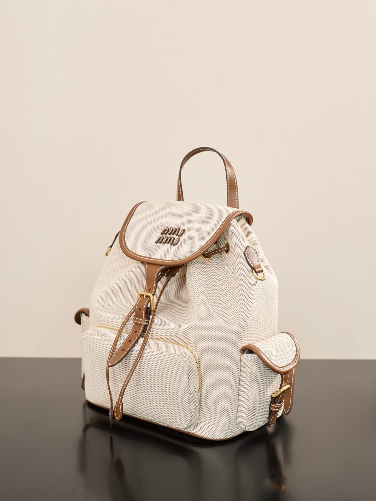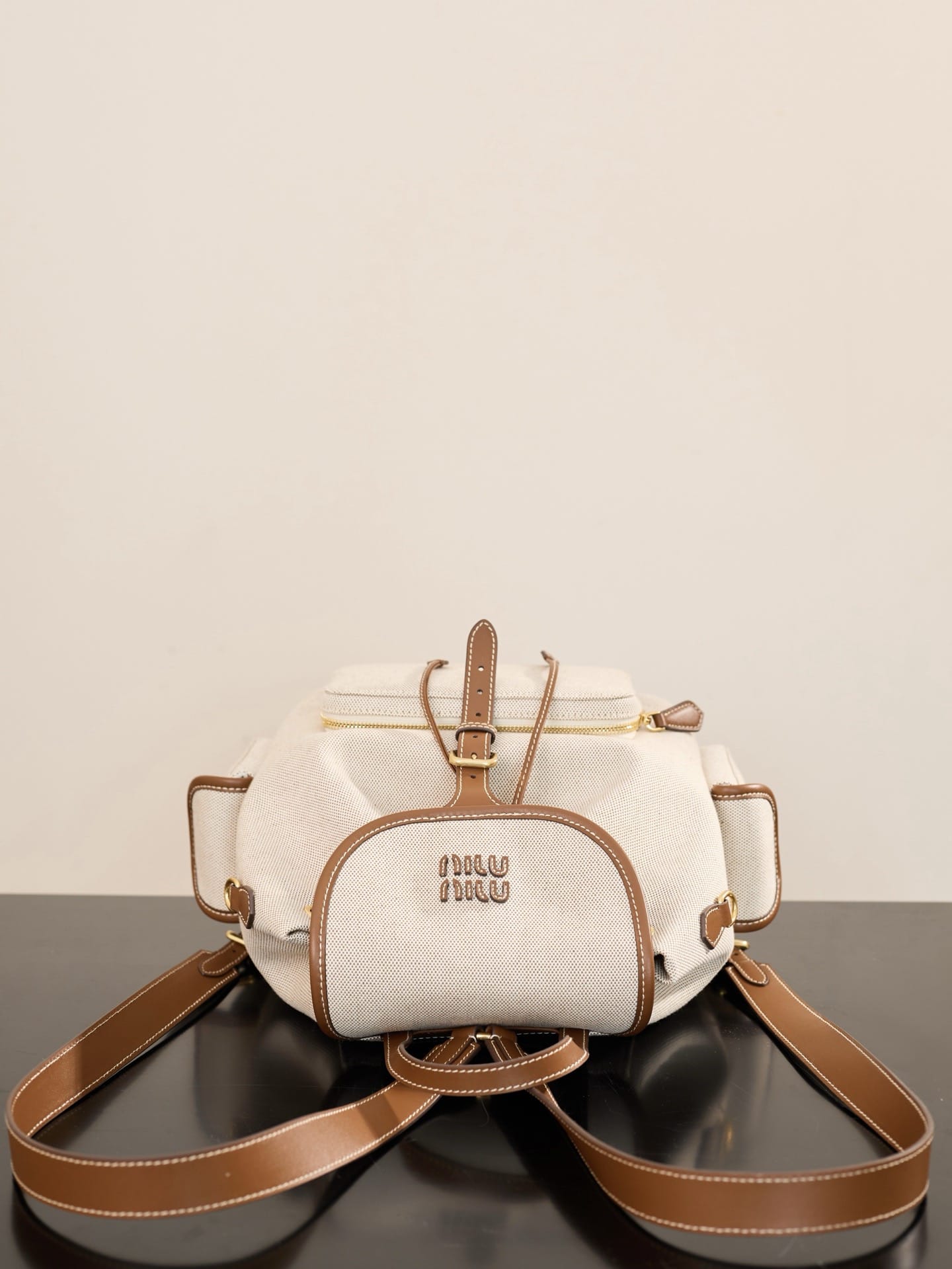 Canvas and leather backpack Miu Miu 5BZ042.1
